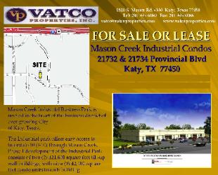 INDUSTRIAL CONDO UNITS FOR SALE Condo Office/Warehouse Business Park Mason Creek Industrial Condominiums 21732 and 21734 Provincial Blvd. Katy, Texas 77450